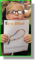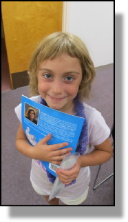 program. Both girls (fast friends since kindergarten) sit at my feet as I read my story about Eva Blue.
